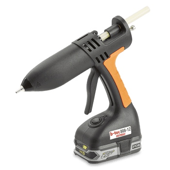 Portable, lightweight professional 12mm (½”) glue gun. Runs on battery power with an output of 1kg (2.2lbs)/hr. Features dual temperature setting with Eco mode to extend battery life. Also has a 3 minute warm-up time & illuminated on/off switch. Fully compatible with the Badaptor battery adaptors.