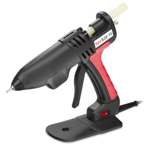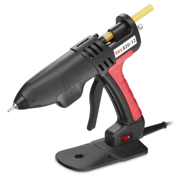 Adjustable temperature, heavy duty medium size 12mm (1/2″) glue gun. Robust and easy to use, fast recovery, medium output, 2 minute warm up time & illuminated on/off switch.